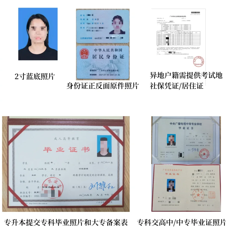成人高考报名材料: