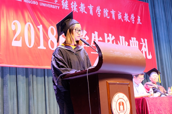 宁波大学继续教育学院副院长陈伯利在典礼上致辞。他指出:20179月宁波大学被国家教育部、财政部命名为“双一流”大学,即为:“世界一流大学和一流学科的大学。”建设世界一流大学和一流学科是中国共产党中央、国务院作出重大的战略决策,有利于提升中国高等教育综合实力和国际竞争力,为实现两个一百年奋斗目标和中华民族伟大复兴的中国梦提供有力的支撑。陈院长向毕业生阐述了“双一流”建设重要任务和建设总目标;希望毕业生们不忘初心,继续努力!最后祝愿宁波大学各位毕业生在今后各自岗位上,为国家、为社会重创辉煌,再展宏图。